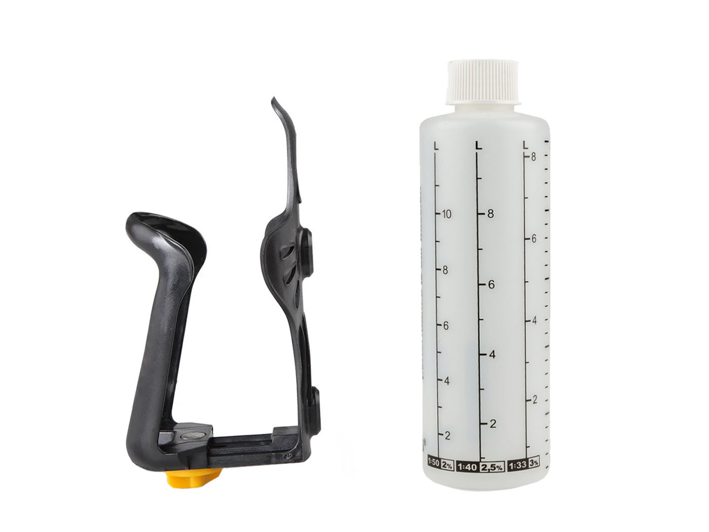 Eenvoudig te monteren. Omdat iedere schakelbrommer verschillend is kun je zelf bepalen hoe je deze wilt bevestigen. De houder bied mogelijkheden voor diverse montagewijzen. de houder heeft 2 montagegaten met een hartafstand van 65mm. Doordat deze houder schuifbaar is kun je zelf bepalen hoe straks de mengfles geklemd moet zitten.