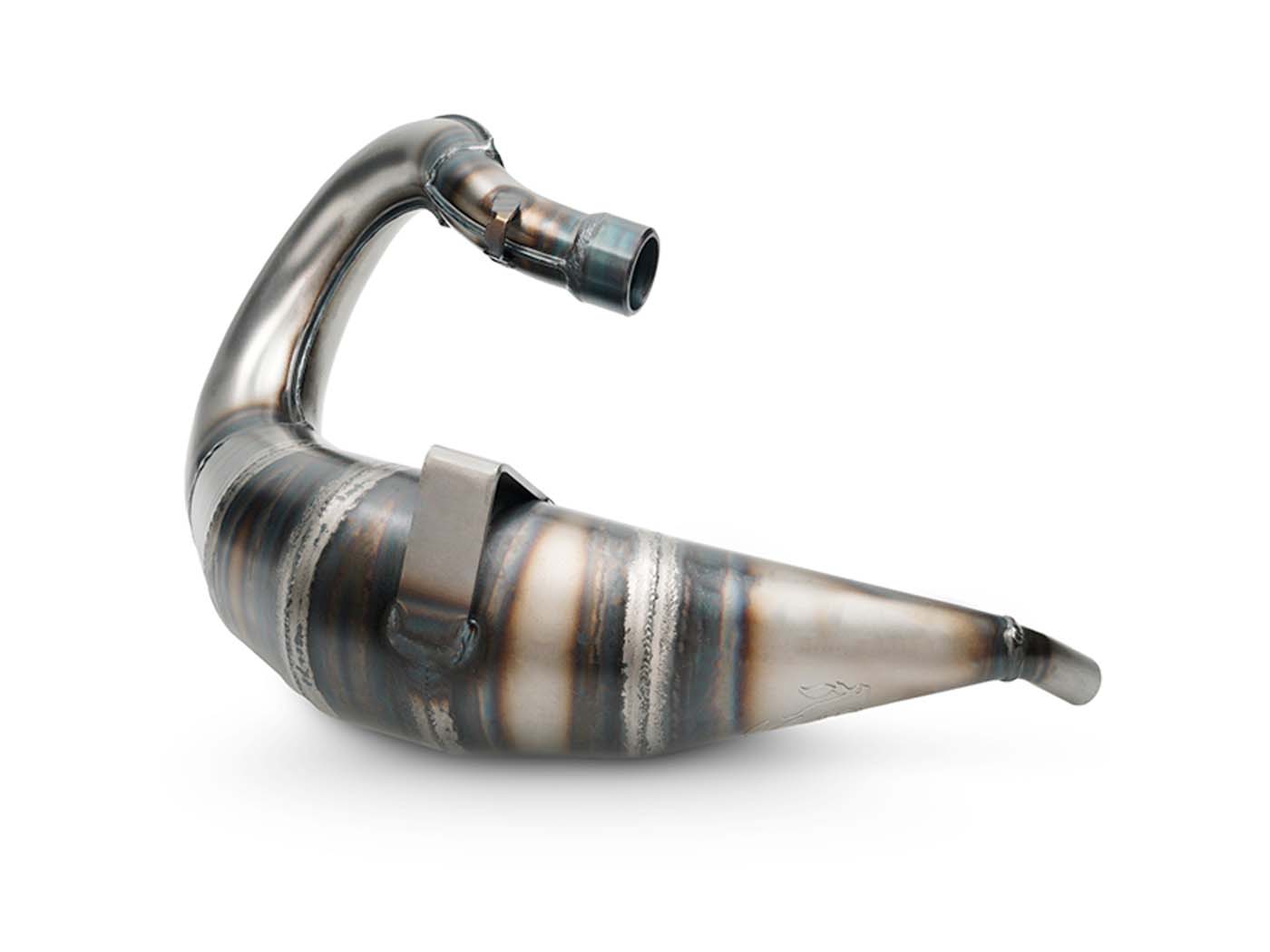 Top-mounted MX-style uitlaatsysteem van Voca Racing zonder einddemper.